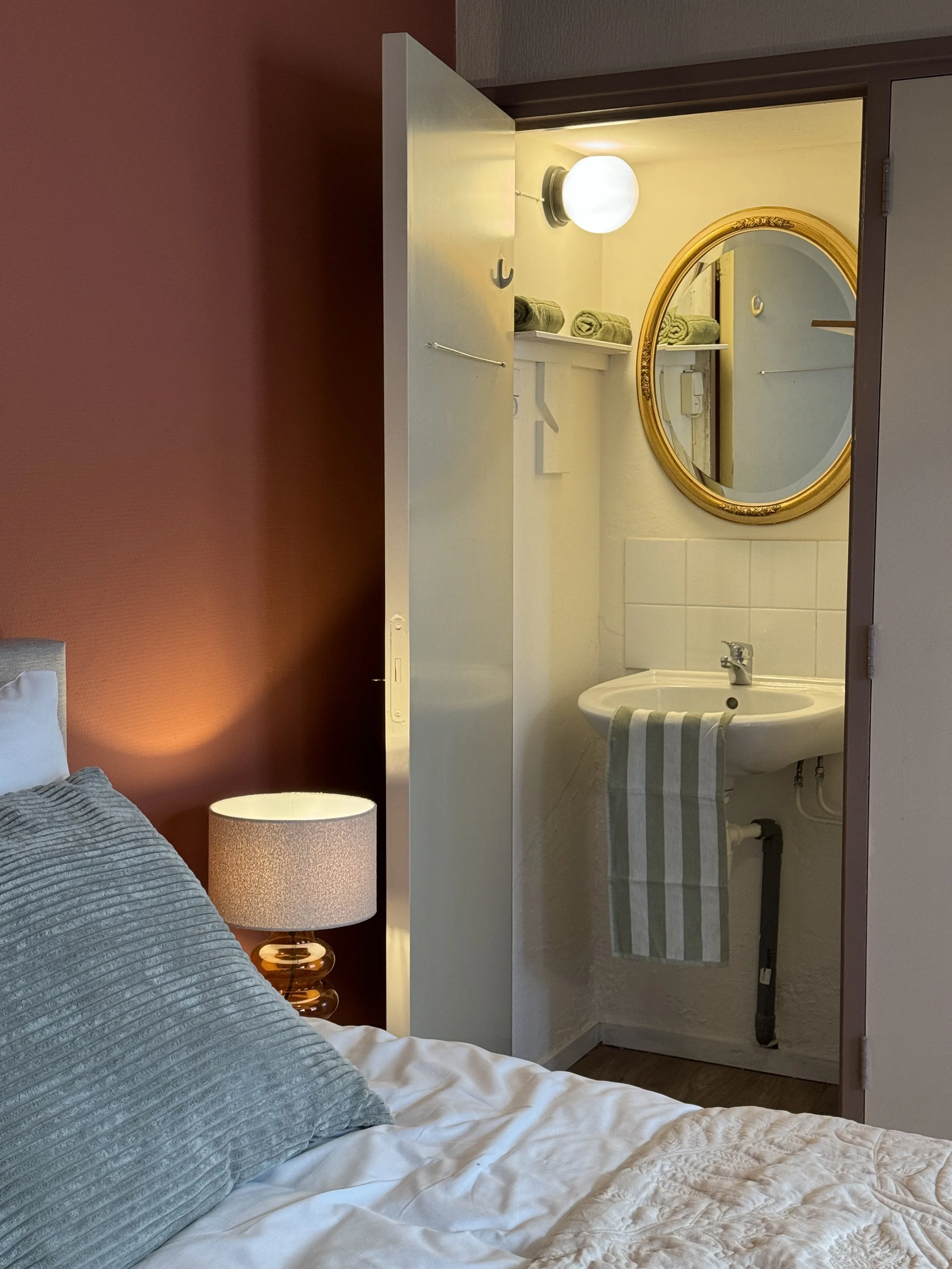 A small and simple room at the back of the apartment, ideal for someone who doesn’t need much space.